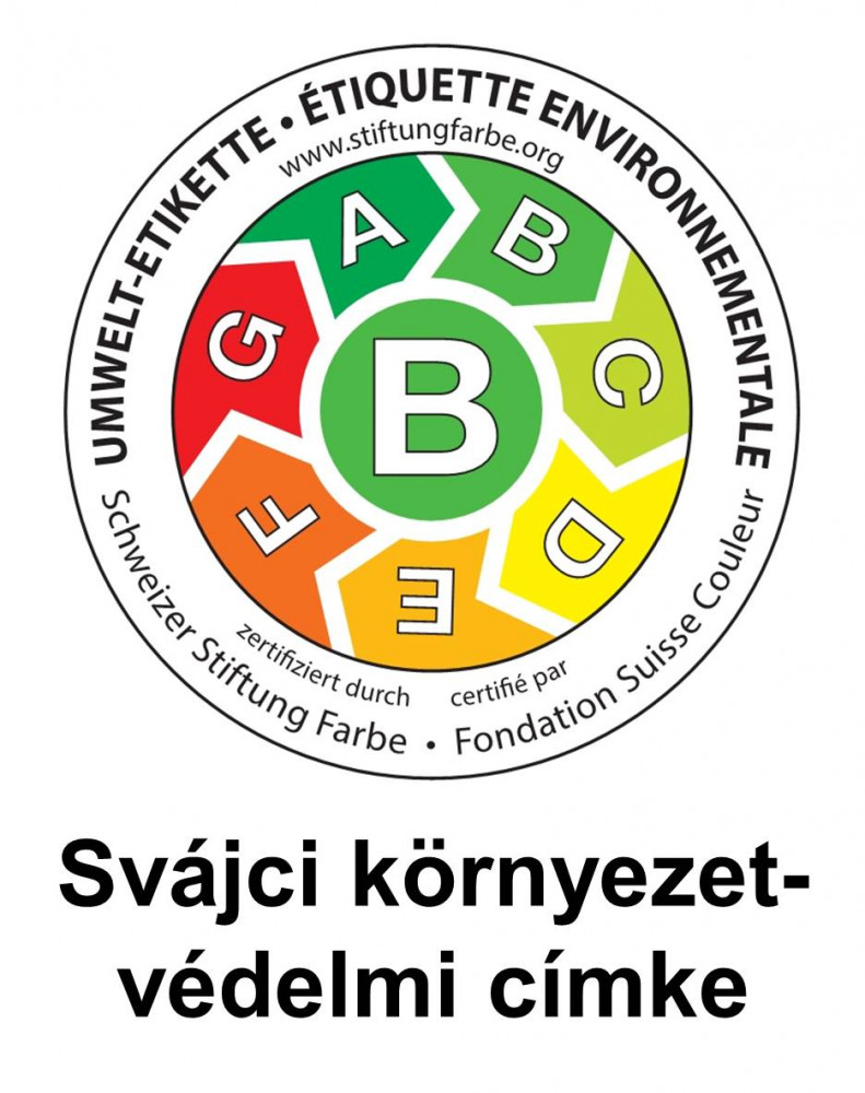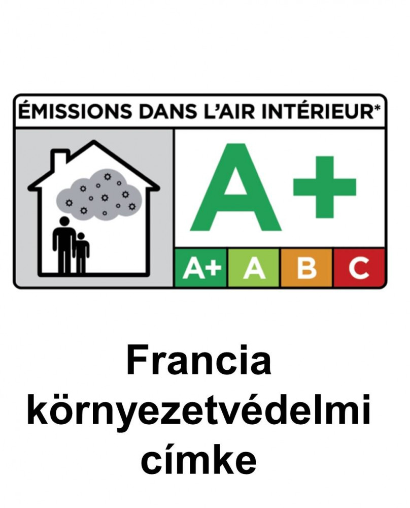 Káros anyag kibocsájtás mentes, TÜV-Minősítés, A+ Francia környezetvédelmi címke, B Svájci környezetvédelmi címke